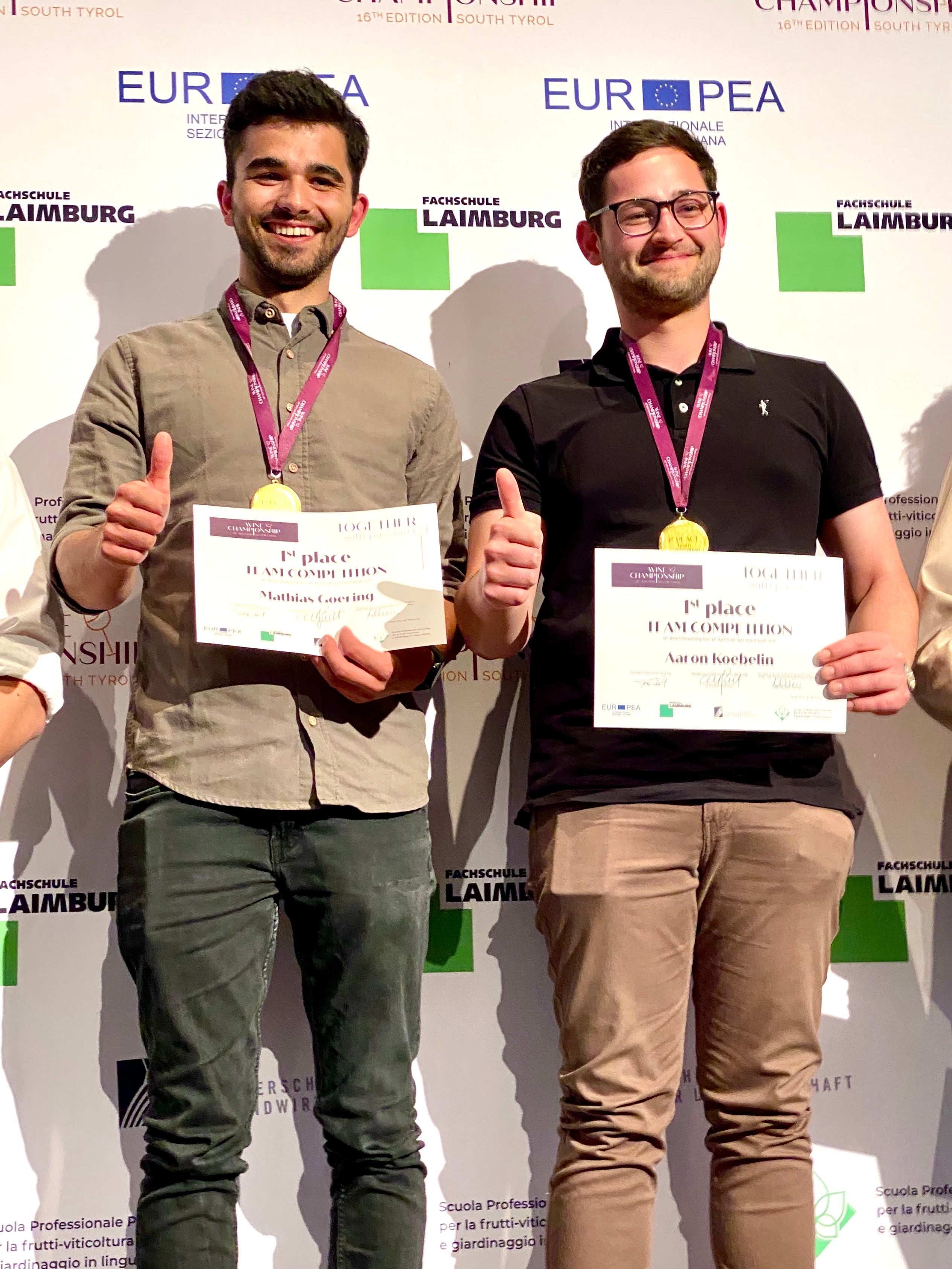 Each team will be composed of two students, aged between 17 and 25 years, plus a team leader (teacher). Participants must still be in school or in training! Each student is only allowed to participate once in the Wine Championship.