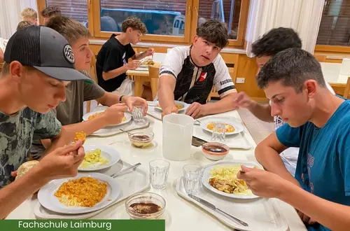 Der Schule ist ein Heim angeschlossen, das bis zu 180 Jugendlichen Unterkunft und Verpflegung bietet. In unserem Heim werden sowohl Jungen als auch Mädchen untergebracht. Große Spielräume, Aufenthaltsräume, Film- und Musikräume gehören zur Grundausstattung. Weiters bietet das Haus zahlreiche Möglichkeiten sportlicher Betätigung: einen Fußballplatz, ein Mehrzweckfeld im Freien, eine Turnhalle mit integriertem Fitnessraum, Tischtennis, Tischfußball, Billard, Darts und vieles mehr.