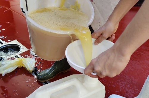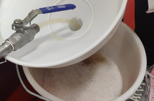 Abfüllung des Apfelessigs der vor 2 Wochen in die Fessleranlage gefüllt wurde. Befüllung der Submersanlage mit neuem Apfelwein um in wenigen Tagen Essig zu haben.