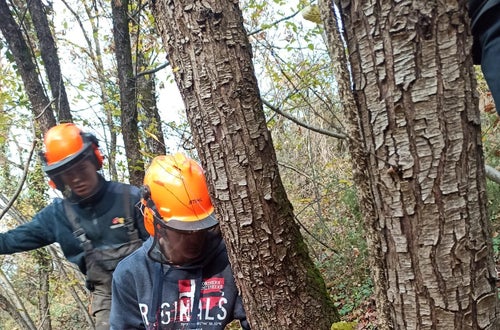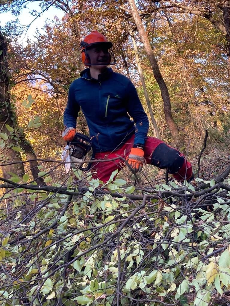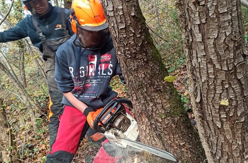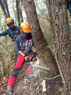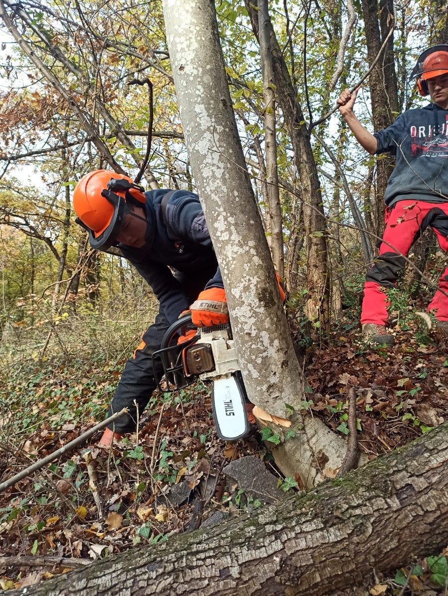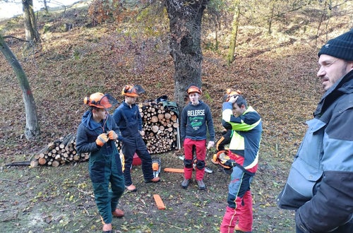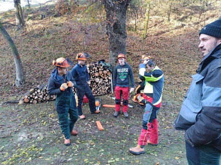 Diese Übung führte unsere Schüler*innen ins Biotop Castelfeder, wo der Wald "ausgeputzt" wurde. So konnten sie auch in Hanglagen den Umgang mit der Motorsäge üben