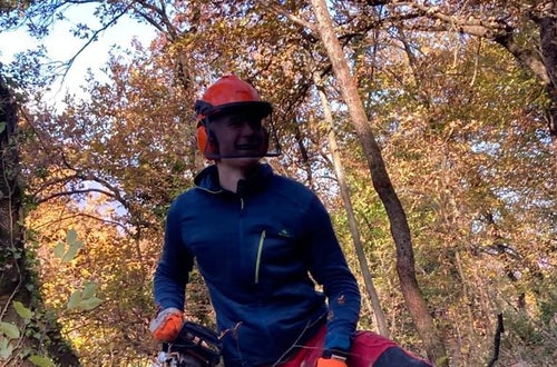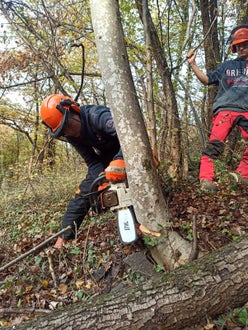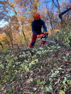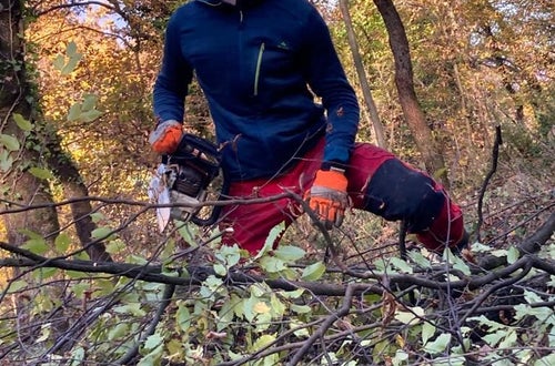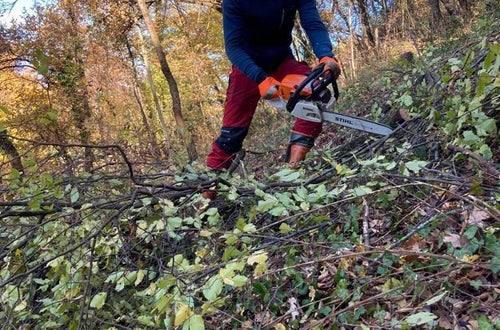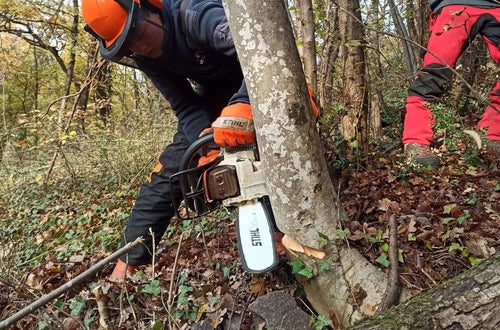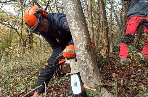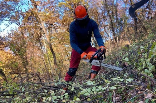 Arbeiten mit der Motorsäge im Biotop Castelfeder