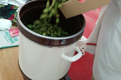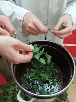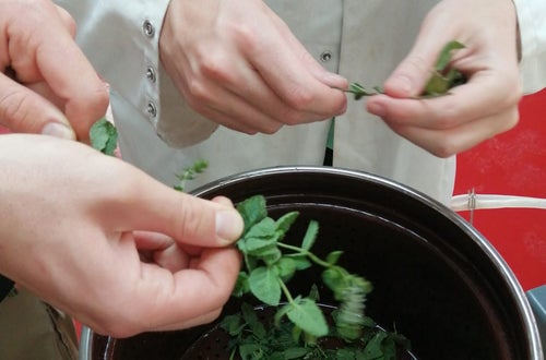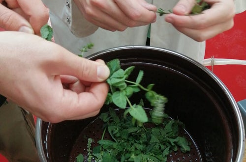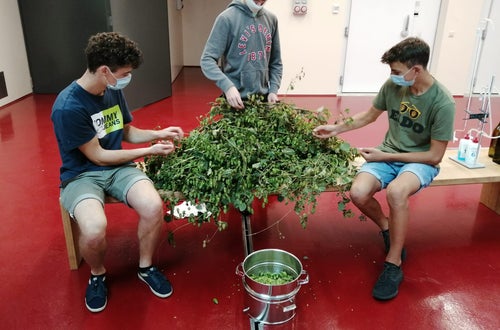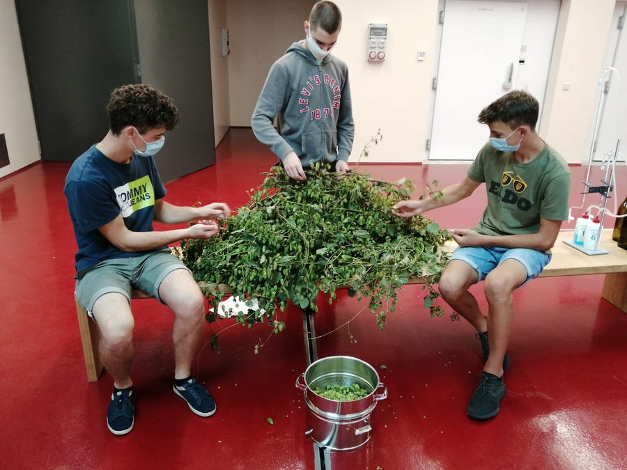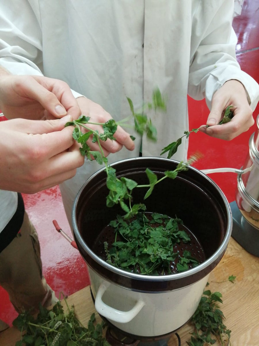 Unsere Lebensmitteltechniker*innen bei der Produktion von Kräuterextrakten aus Hopfen, Minze, Salbei, Melisse und Rosmarin.