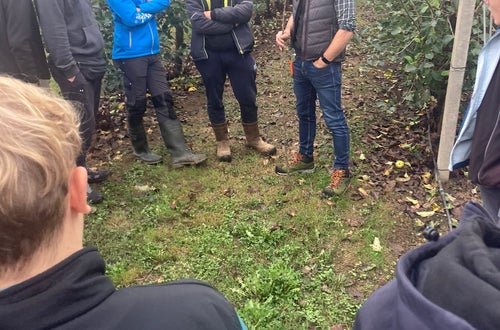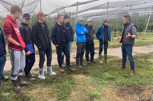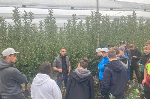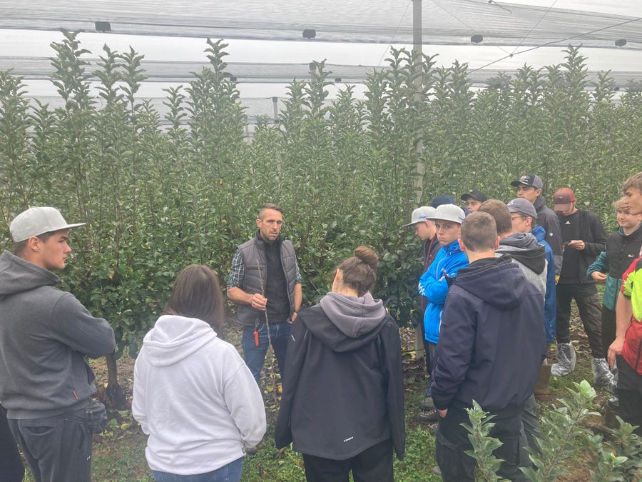 Die Laimburg auf Achse.... - Beste Qualität beim Pflanzmaterial ist einer der notwendigen Punkte für den guten Start einer Neuanlage im Apfelanbau. Das Baumschulwesen ist einer der Schwerpunkte im dritten Ausbildungsjahr. Um das in der Theorie Erlernte zu vertiefen, besuchen die dritten Klassen den Edelreiserschnittgarten vom Konsortium Südtiroler Baumschulen (KSB) in Corzano (BS), sowie die Produktionsstätte der Baumschule Malleier in Milzano (BS).