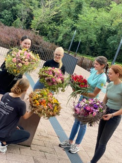 Blumenstraußarrangements unserer Abschlussklasse Floristik - Bravo junge Floristinnen