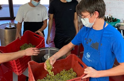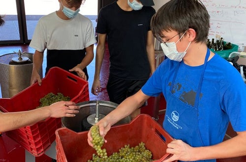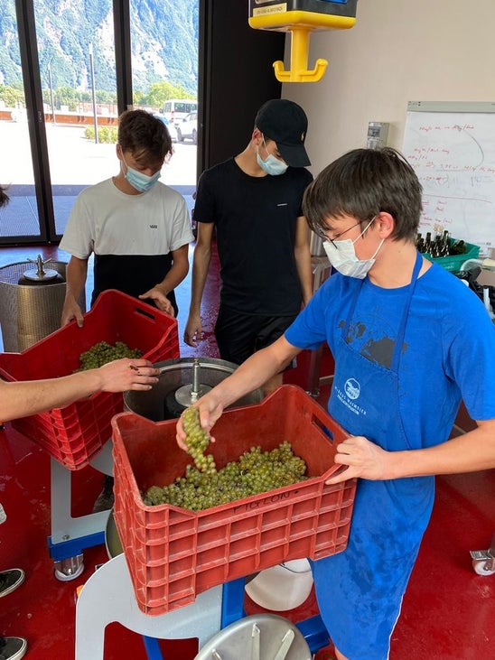 Unsere Schüler*innen erlernen nicht nur wie hochwertiges Traubenmaterial produziert wird, sondern die gelesenen Trauben werden auch im Rahmen der Kellerwirtschaftspraxis eingekellert.