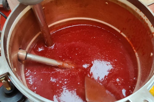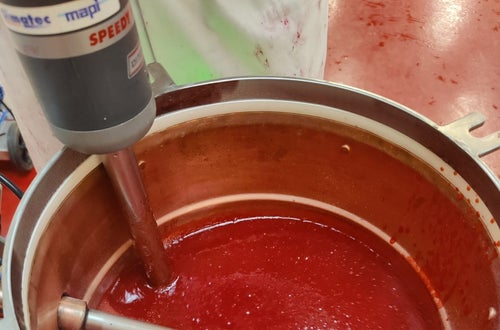 Erdbeerkonfitüre mit dem neuen modernen Marmeladenkocher, Himbeersirup und Schoko-Haselnusscreme, sowie Oxymel und den Gäransatz für den zukünftigen Honigbalsamicoessig wurden hergestellt