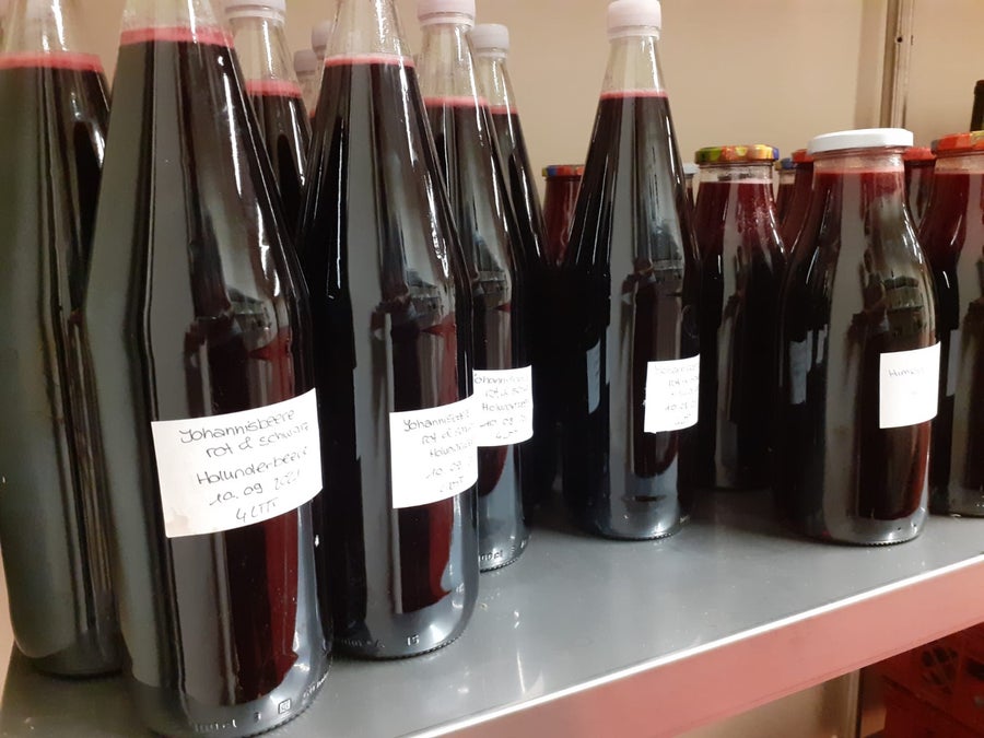 Diese Woche: Apfelsaft aus Red Pop (SK23), Himbeersirup, Asiminamark/püree und Brombeerkonfitüre