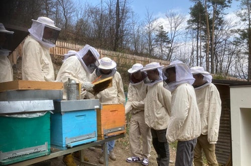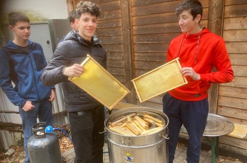 In Zusammenarbeit mit der Fachberatung für Imkerei wurde heute die Bedeutung der Bestäubungsleistung der Honigbiene im Intensivobstbau diskutiert, das Leben der Bienen besprochen, Honig verkostet, Wachs geschmolzen und Bienenvölker in der Bildungsstätte für Bienenkunde in Altenburg in ihrer Entwicklung beobachtet.