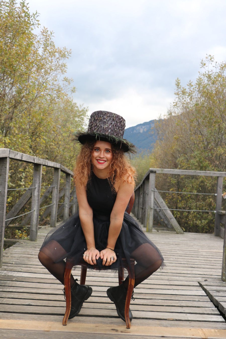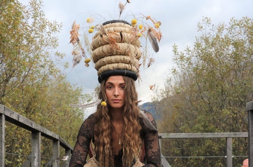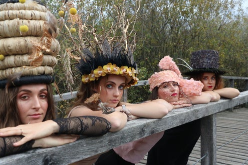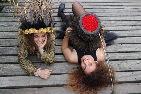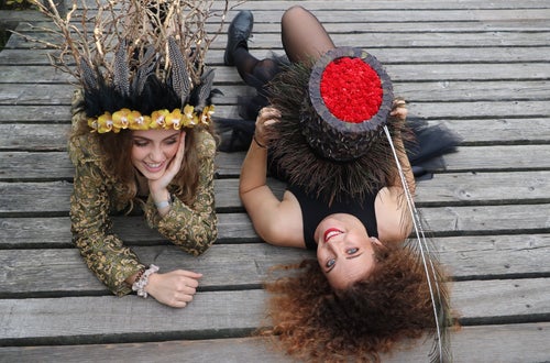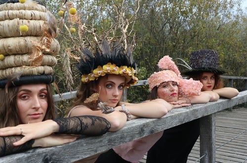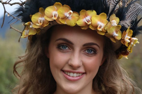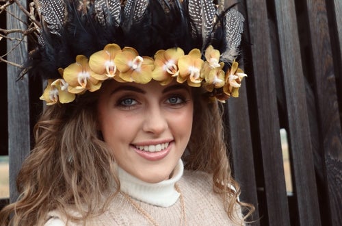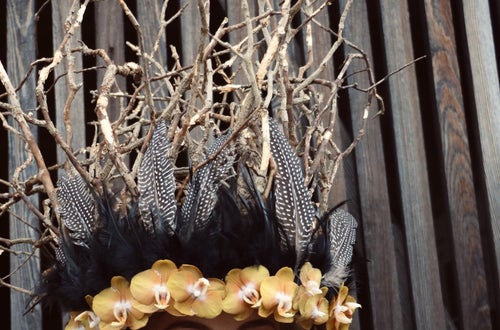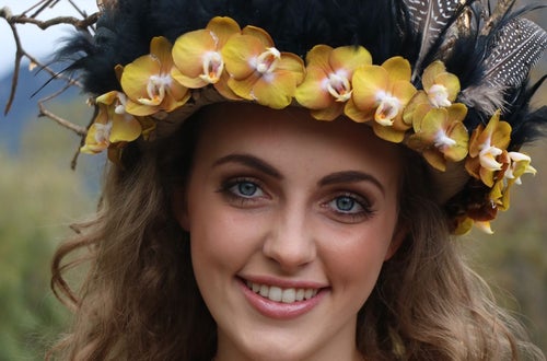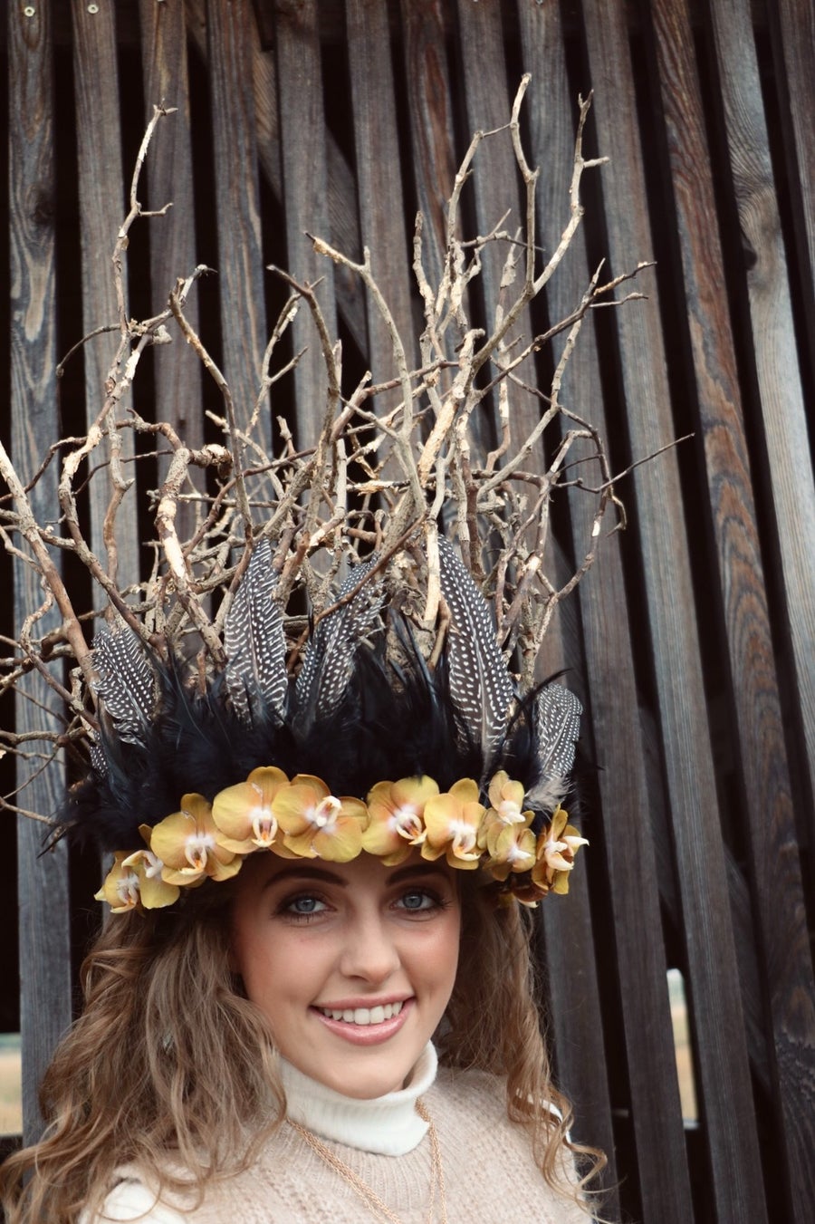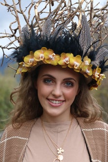 Projektarbeit Qualifikationskurs Floristik 2: Von der Idee zum Werkstück - Die Schülerinnen mussten einen passenden Kopfschmuck zum Designerkleid kreieren.
