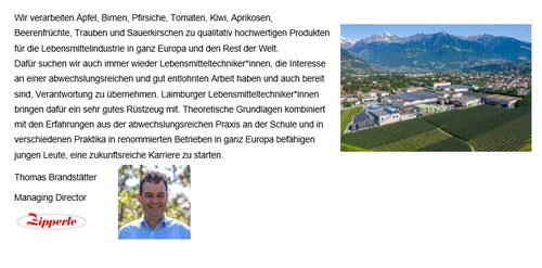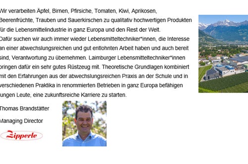 Lesen Sie das Statement von Thomas Brandstätter - Managing Director der Hans Zipperle AG, warum die verarbeitenden Betriebe Südtirols die Fachkräfte der Laimburg wertschätzt.