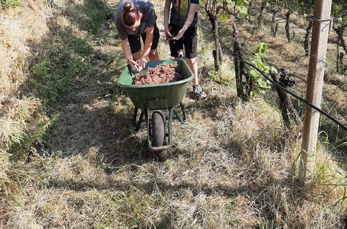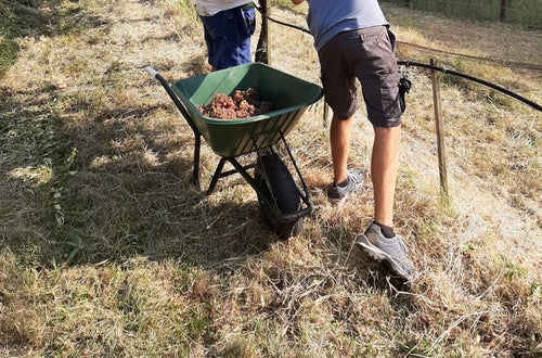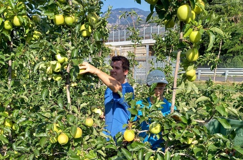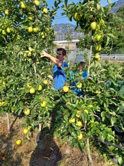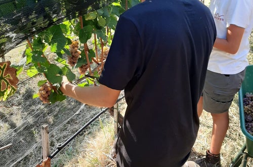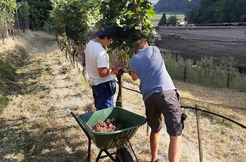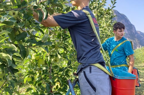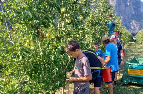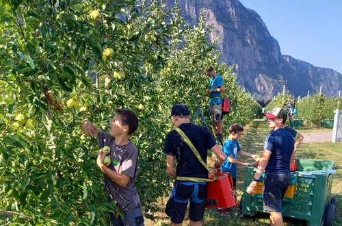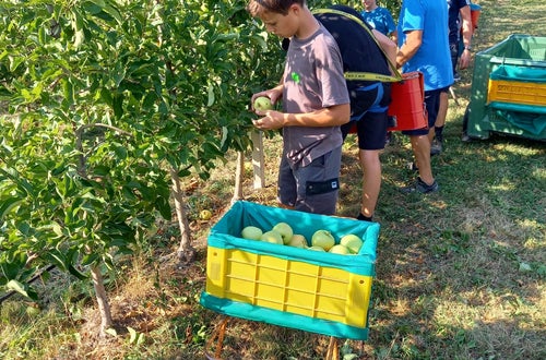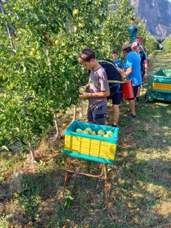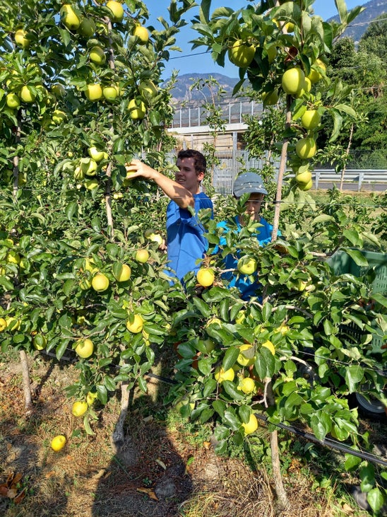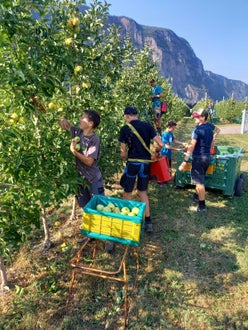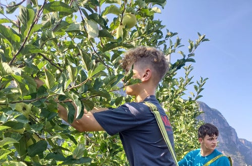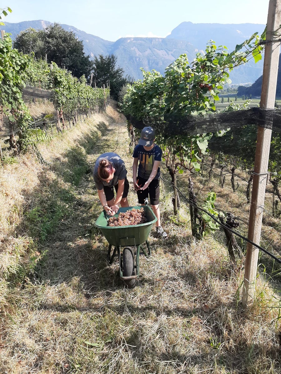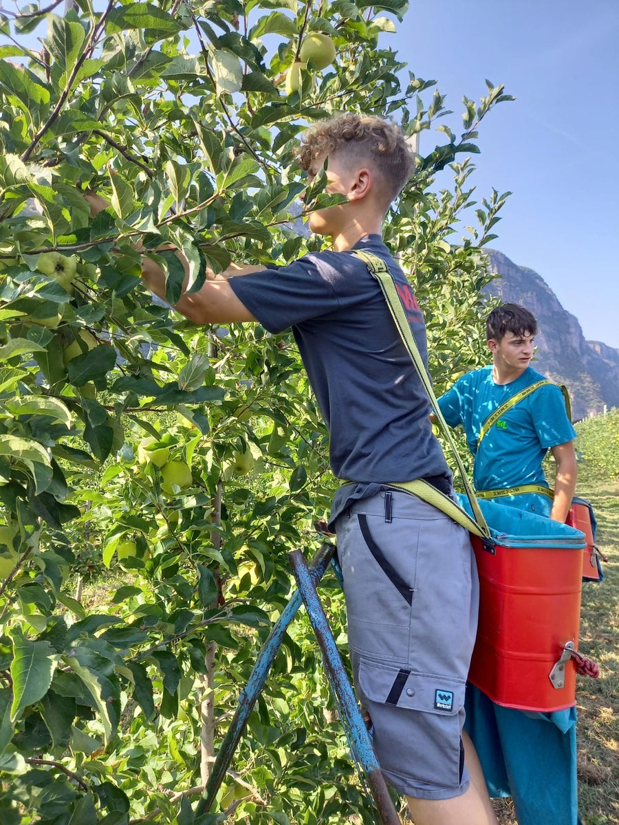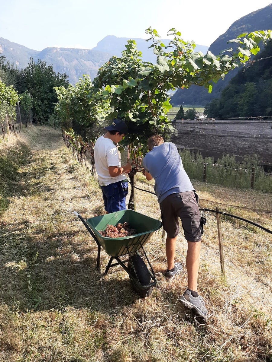 Die ersten Praxiseinheiten beschäftigen sich mit der Weinlese der Sorte Gewürztraminer und Einführung der Ernte der Sorte Golden Delicious.