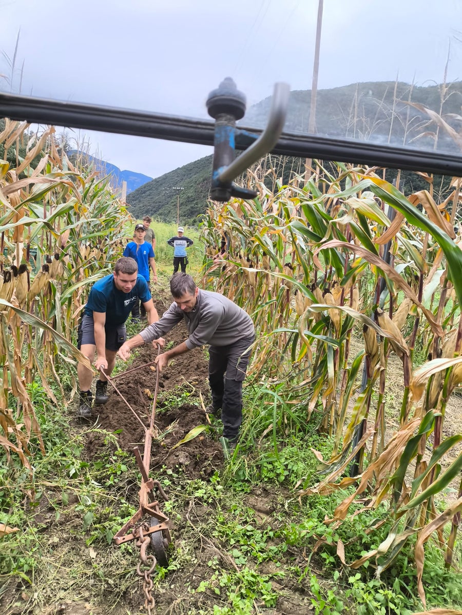 Die Praxis "Selbstversorgung der bäuerlichen Familien" hat das Ziel den Schülerinnen und Schülern den Anbau von Gemüse und Getreide, hauptsächlich Kartoffeln, Weißkohl und Mais und deren Lagerung und Verarbeitung näherzubringen. Jede Klasse bestellt den Schulacker, säht, pflegt und erntet die Kultursorten.
