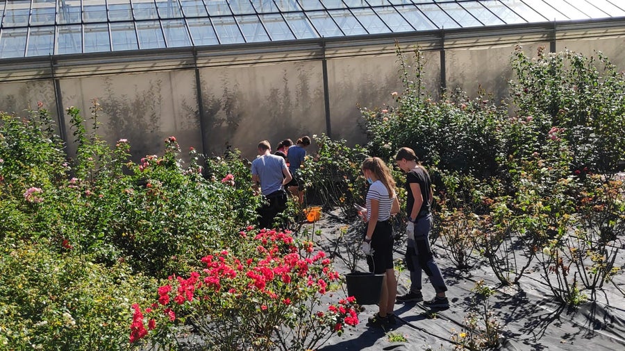 Schnitt von Rosen 01.10.2021 | News Ausbildung Gartenbau Schnitt von Rosen Praxis Gartenbau Und am Besten lernen Schüler*innen von Schüler*innen, deshalb waren die 2. Klassen die Praxistutoren der ersten Klassen Gartenbau Bildergalerie Schnitt von Rosen