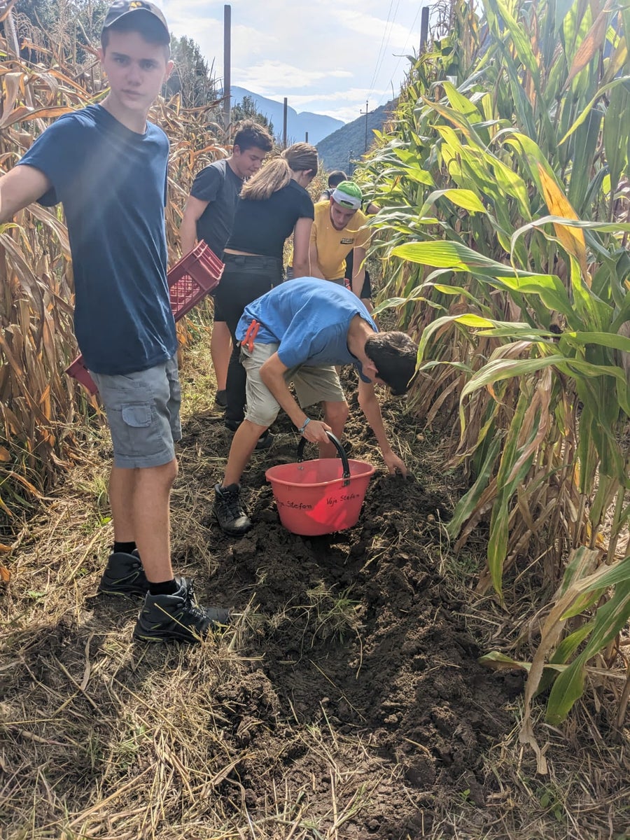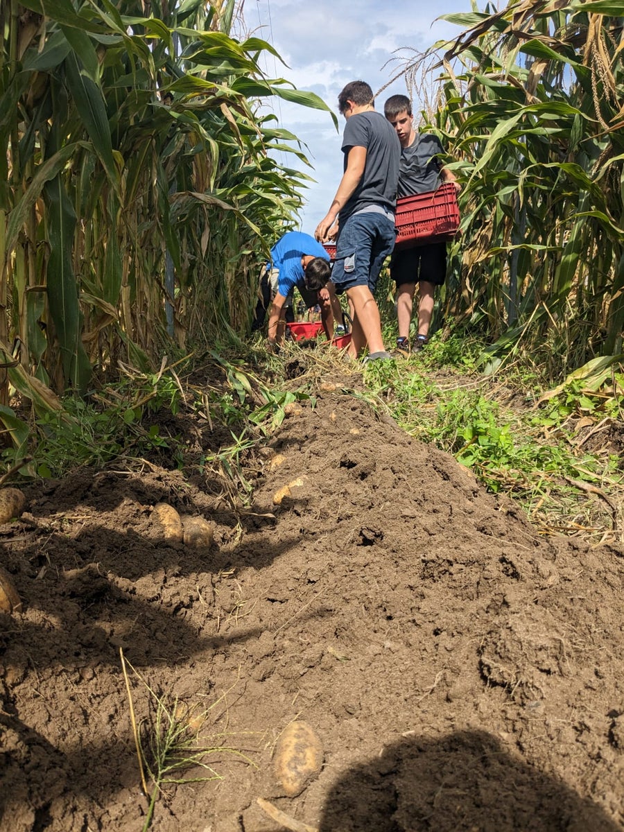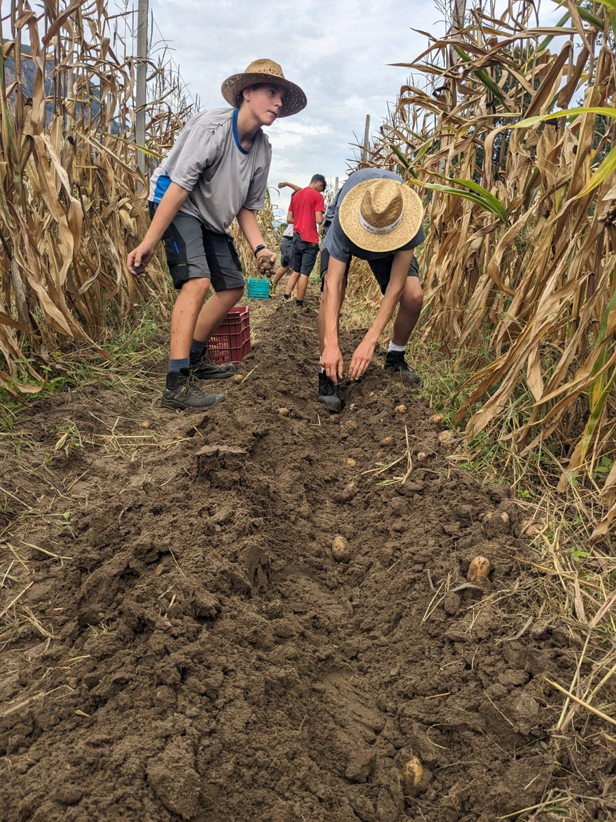 Erdäpfelernte (Kartoffelernte) im Schulacker - Praxis Selbstversorger - Ausbildung Obst- und Weinbau