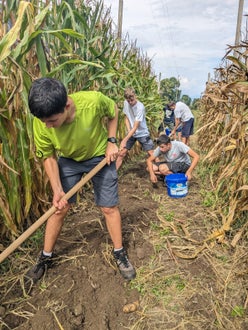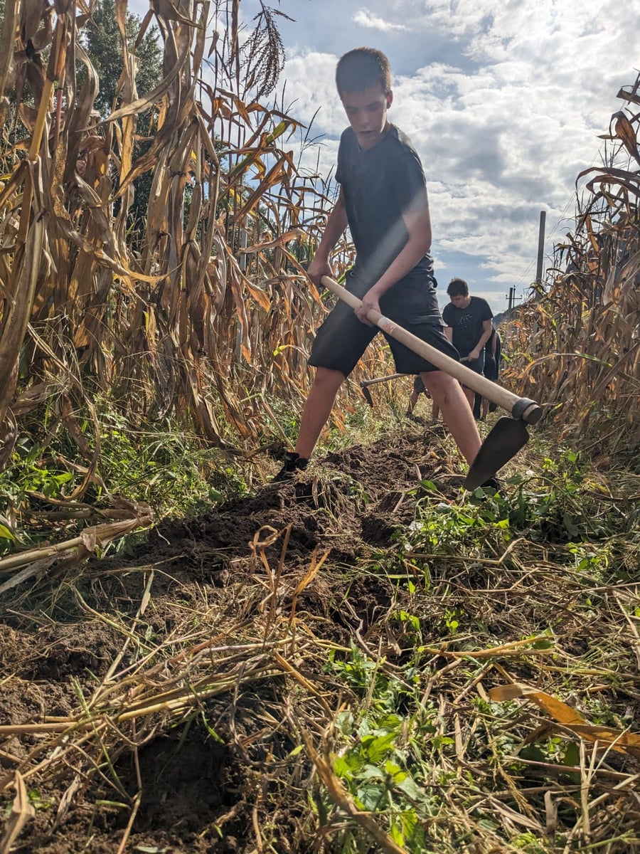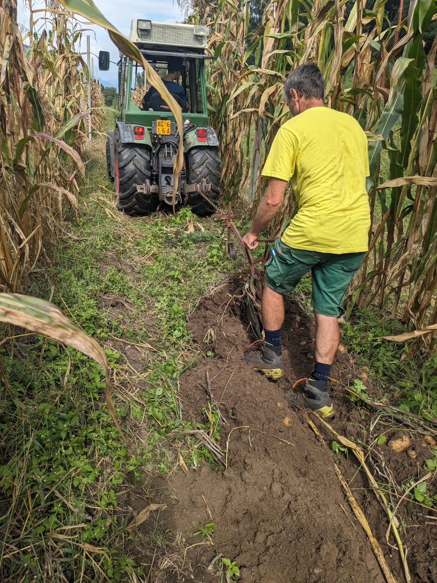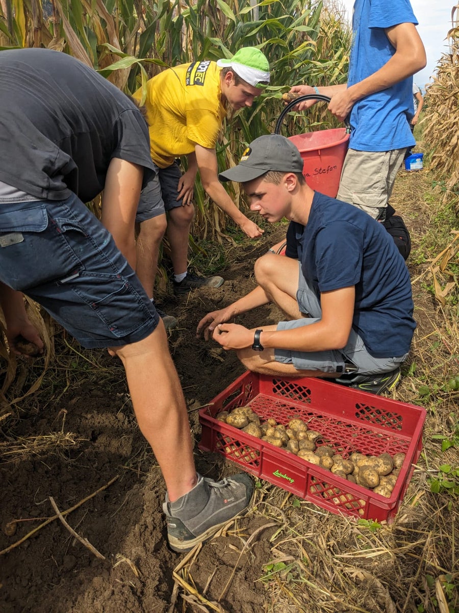 Erdäpfelernte (Kartoffelernte) im Schulacker - Praxis Selbstversorger - Ausbildung Obst- und Weinbau