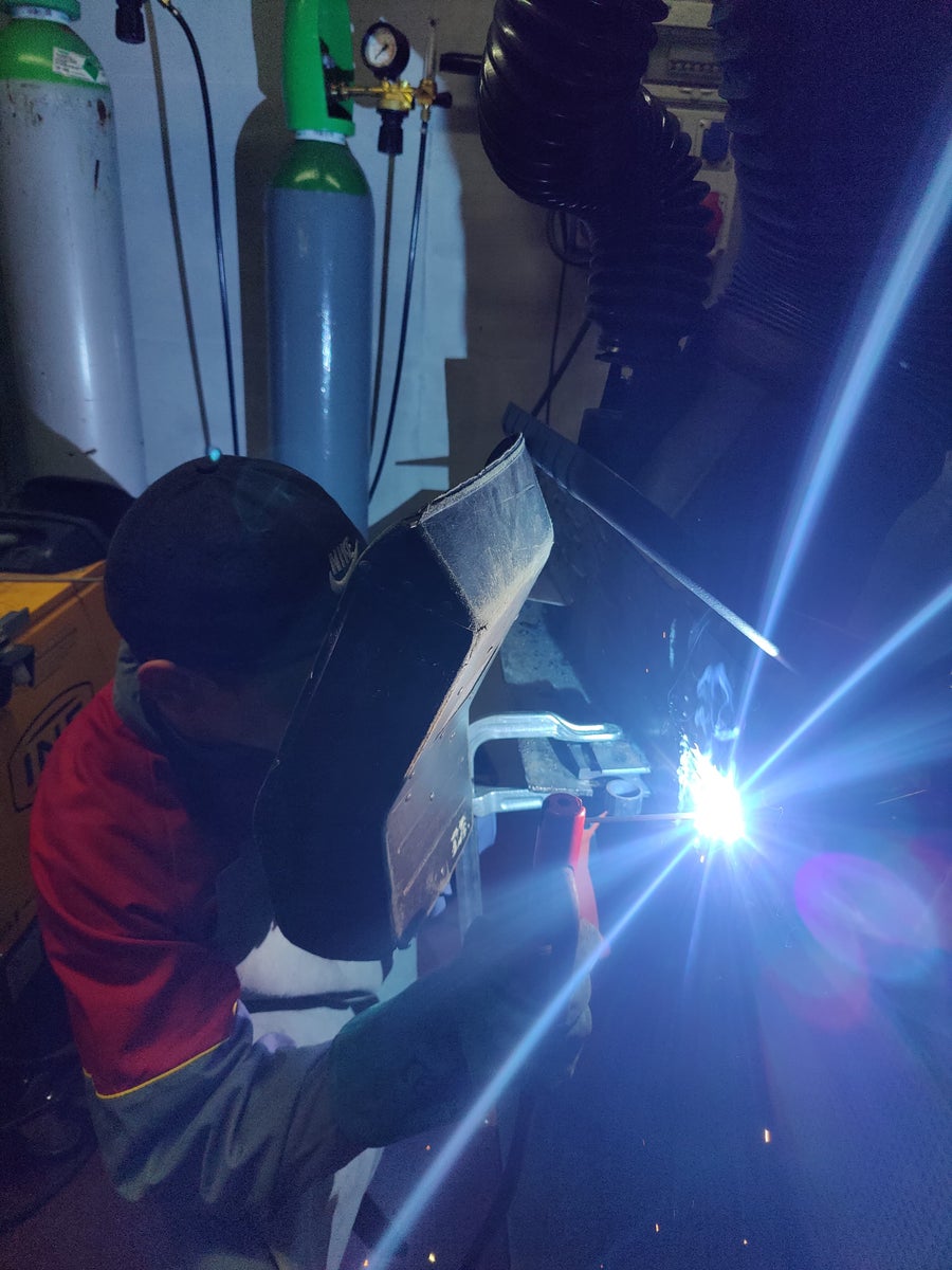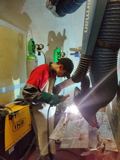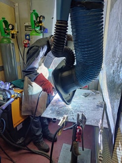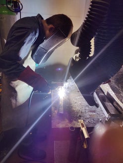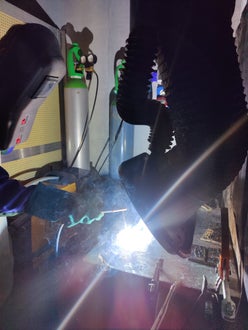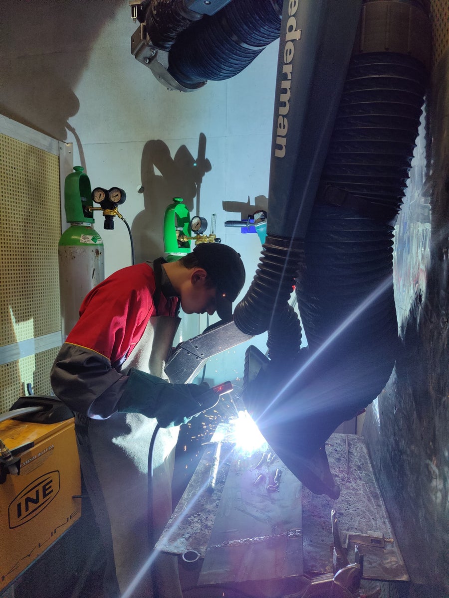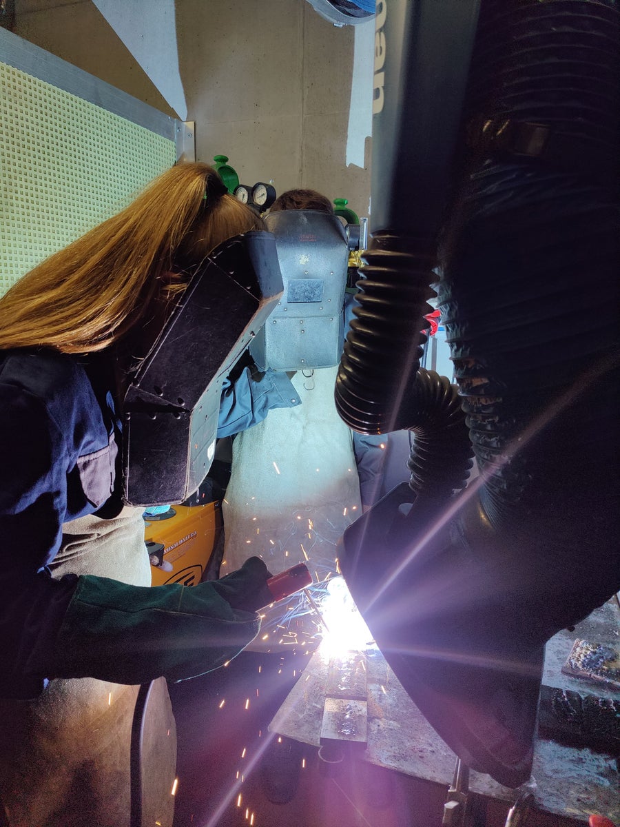 Schweißen im neuen Areal der Schule - Praxis Landtechnik - Ausbildung Obst- und Weinbau