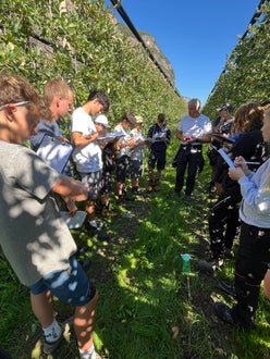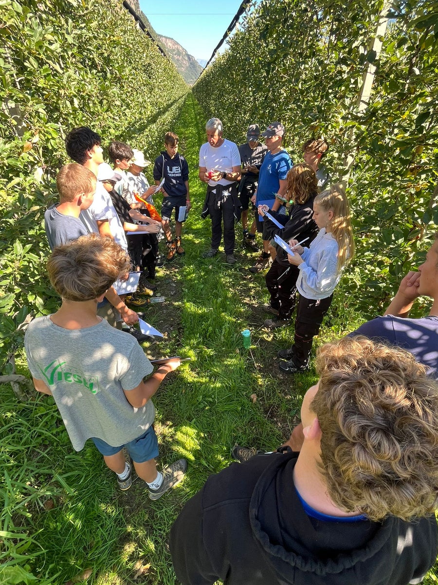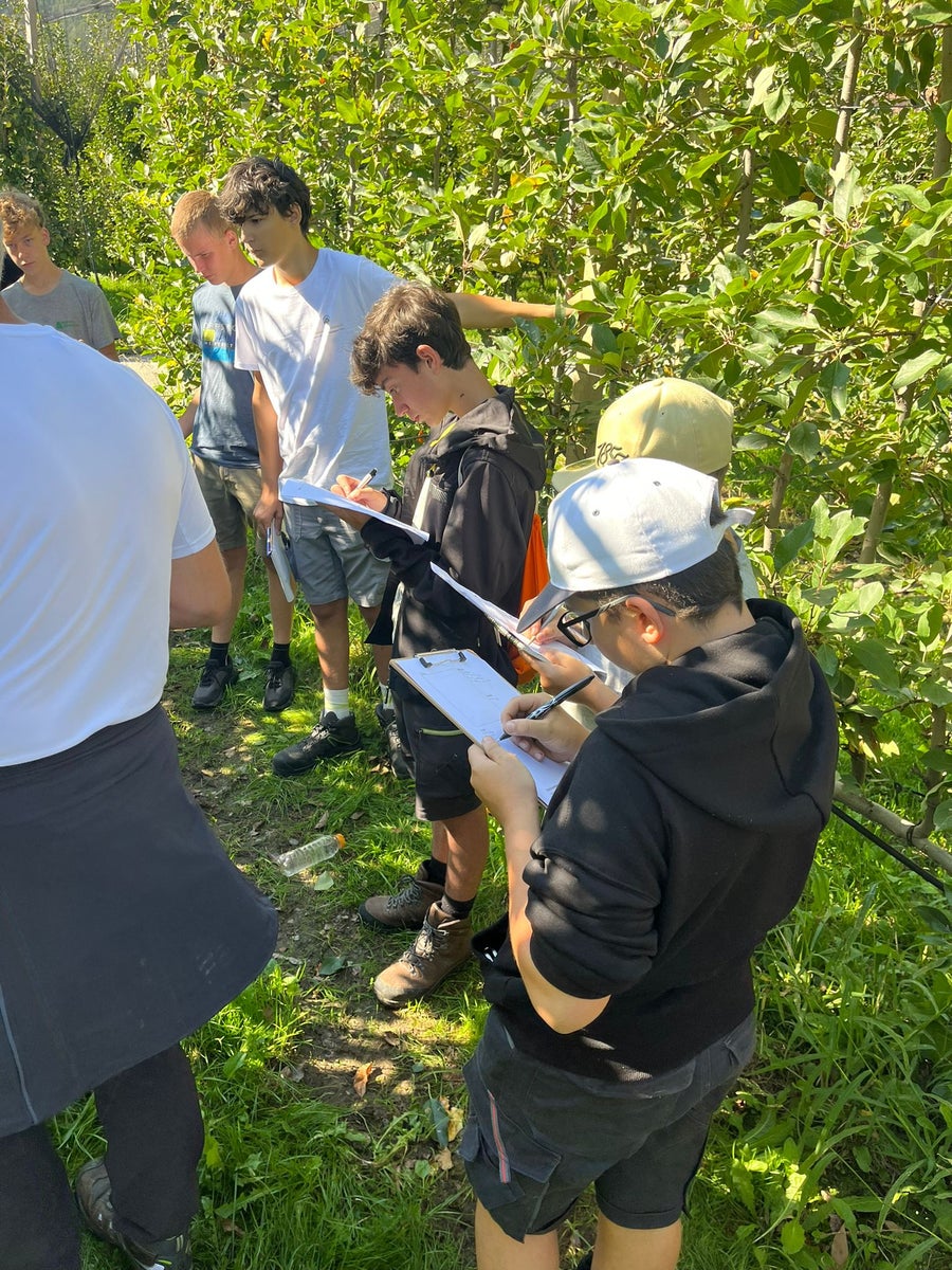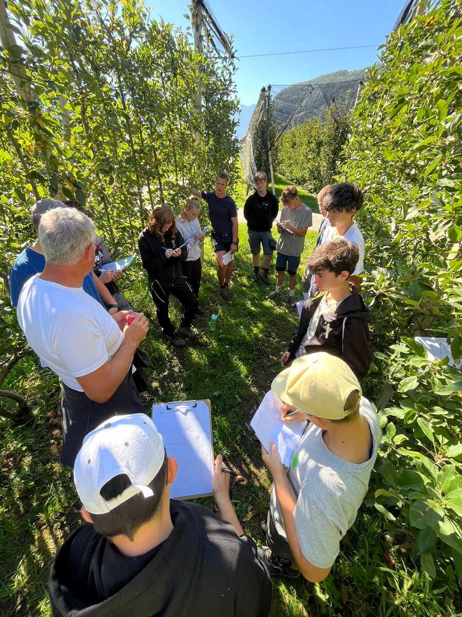 Ein wichtiger Bestandteil der praxisnahen Ausbildung im Obstbau ist die Sortenbegehung unserer 1. Klassen. Ziel ist es, die Schülerinnen und Schüler gezielt über verschiedene Obstsorten, deren Eigenschaften und das Anbauverhalten zu informieren. Dabei werden die Unterschiede in Ertrag, Fruchtgröße, Fruchtqualität, Reifezeit sowie Anfälligkeiten gegenüber Krankheiten und Schädlingen intensiv besprochen und bewertet.