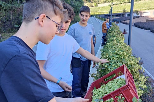 In der Ausbildung Lebensmitteltechnik erlernen die Schüler*innen in der Praxis Landwirtschaft auch die Produktion von Lebensmittels selbst. Gerade bei der Ernte sind erlernen die zukünftigen Lebensmitteltechniker*innen die Qualitätskriterien zu prüfen.