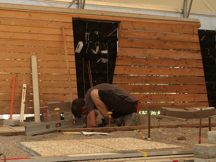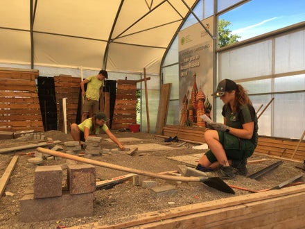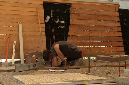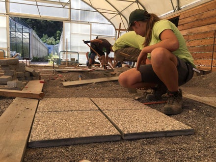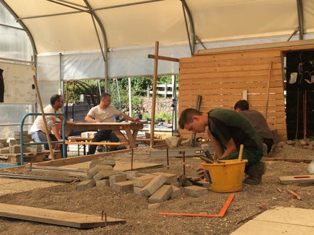Vermessen und Verlegung Schrittplatten in unserem Übungsbereich für Garten- und Landschaftsbau