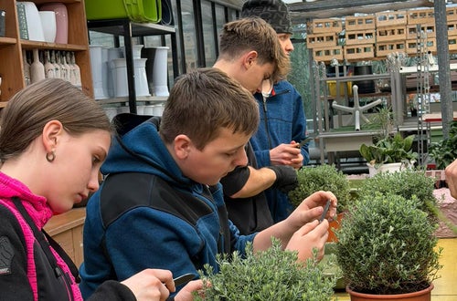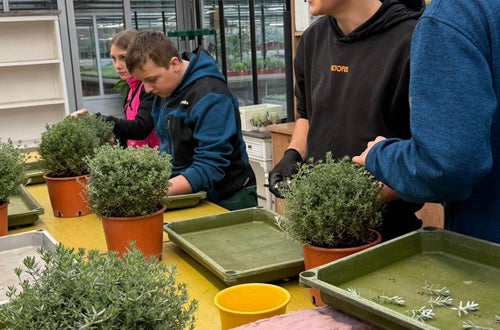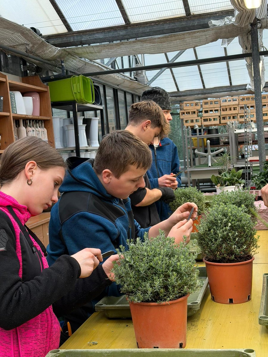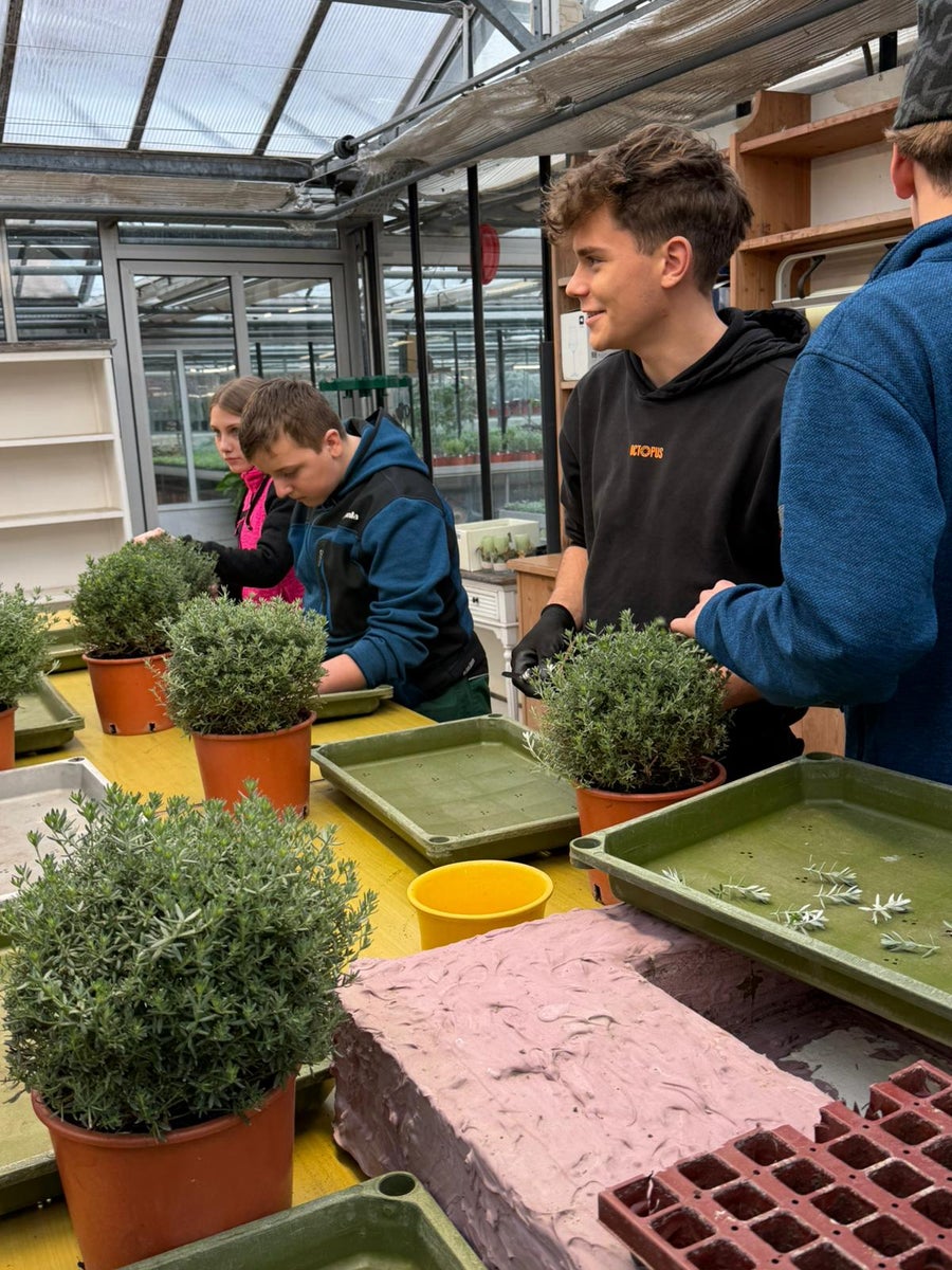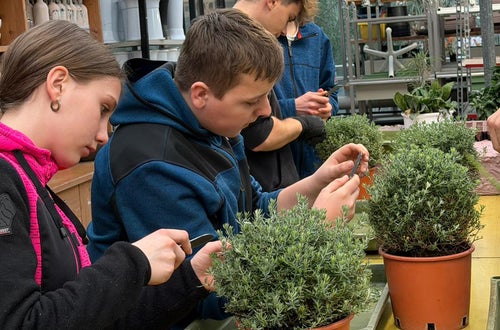 In der Praxis Gartenbau werden von unseren Schülerinnen und Schülern je nach Pflanzenart Kopf‑, Teil‑ oder Triebstecklinge verwendet. Nach dem präzisen Schnitt werden die Stecklinge von unteren Blättern befreit. Eine hohe Luftfeuchte, konstante Temperaturen und gleichmäßige Bewässerung fördern die zügige Wurzelbildung.