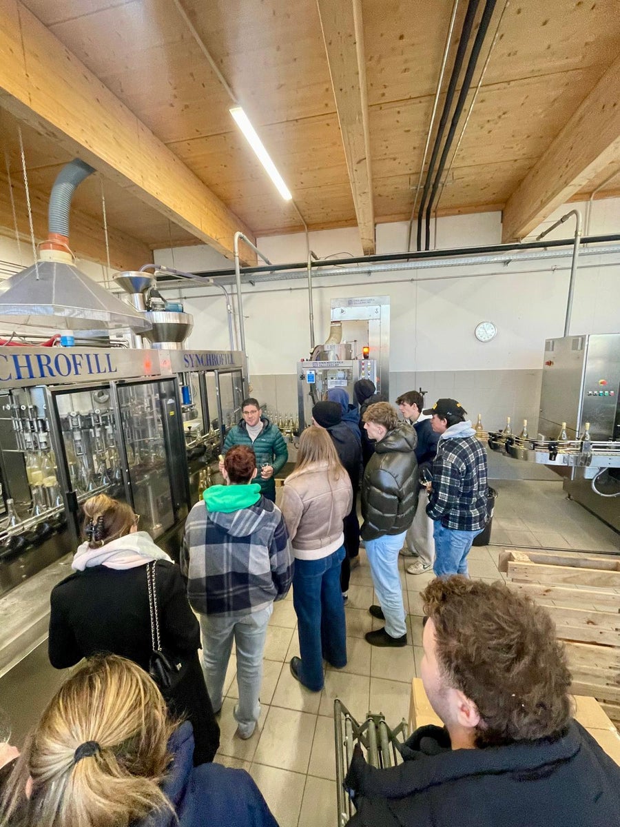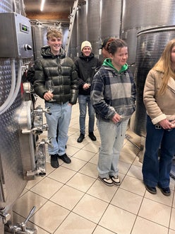 Praxis hautnah: Besichtigungen moderner Weinproduzenten: Ergänzend zur Theorie boten Betriebsbesichtigungen wertvolle Einblicke in die Arbeitsweise zeitgemäßer Kellereien. Die Schülerschaft konnten moderne Technologien, unterschiedliche Ausbauphilosophien und Qualitätsstrategien direkt vor Ort erleben. Solche Praxismomente zeigen, wie vielfältig und anspruchsvoll die Kellerwirtschaft heute ist – von der Traubenübernahme bis zur Abfüllung.
