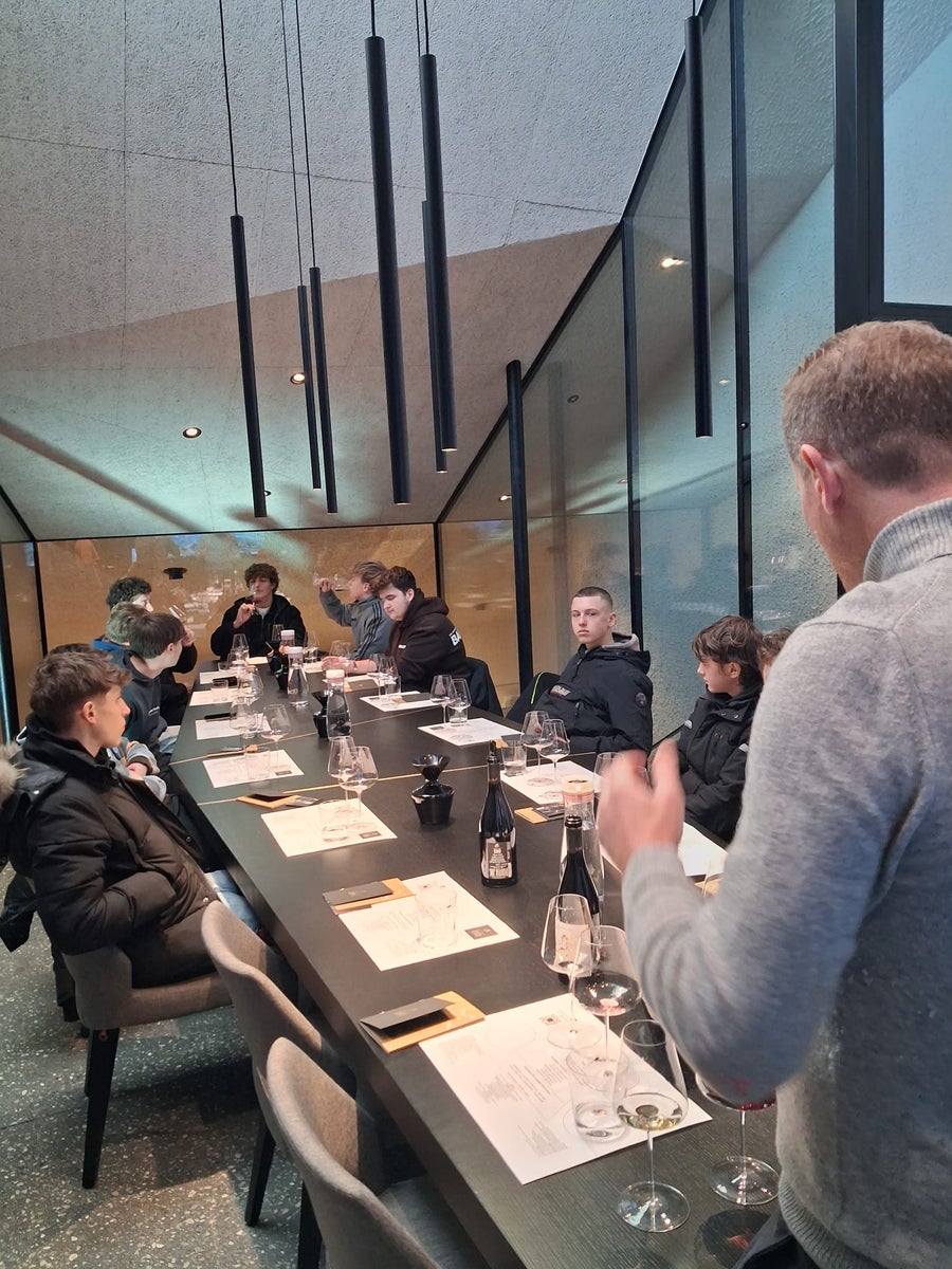 Weine und Terroirs mit allen Sinnen erkennen: Im Rahmen der Sensorikschulung lernten die Auszubildenden, Weine systematisch zu verkosten und deren Herkunft, Stilistik und Qualität zu beurteilen. Durch geführte Verkostungen wurden Aromen, Struktur, Balance und typische Terroirmerkmale bewusst wahrgenommen. Diese Fähigkeit ist entscheidend, um später im Berufsleben fundierte Entscheidungen im Keller und im Weinberg treffen zu können.