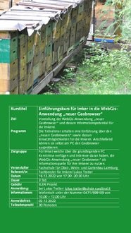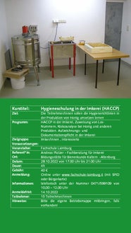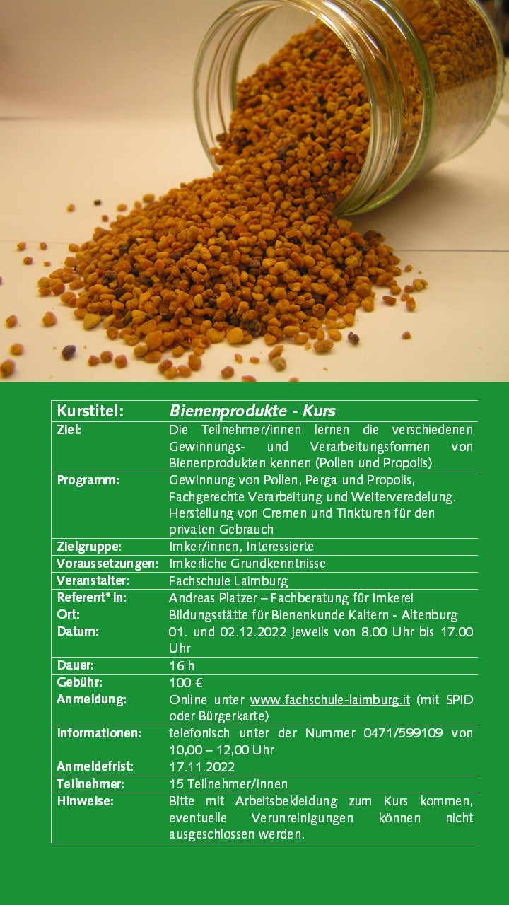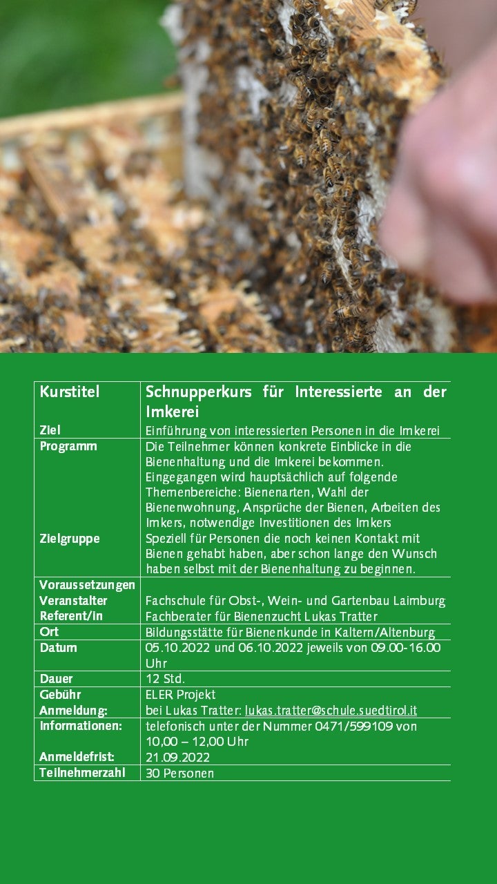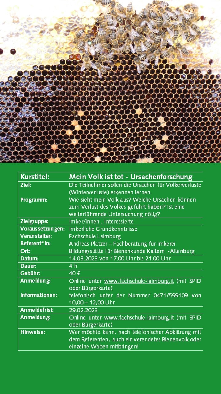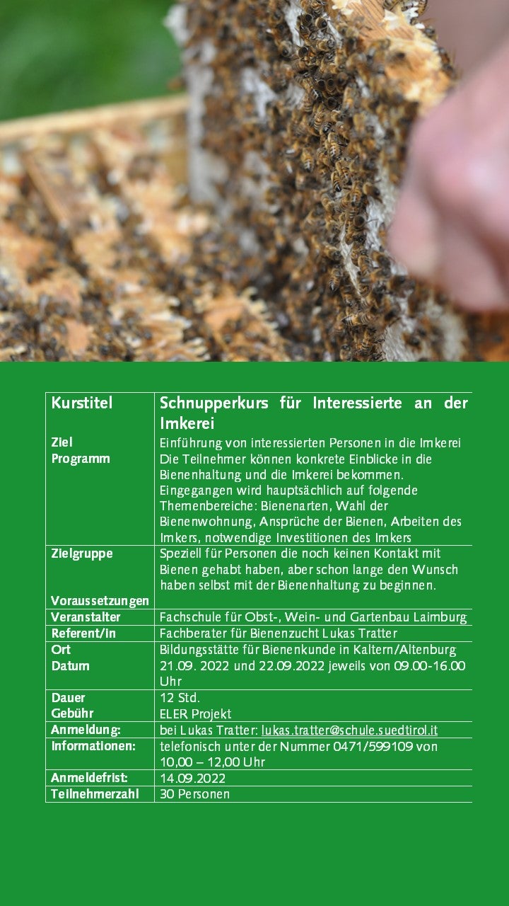 Weiterbildung Imkerei 30.05.2022 | News Ab September 2022 bieten wir wieder interessante Kurse zur Imkerei an. Die Anmeldung ist erst ab 01.09.2022 mit SPID oder Bürgerkarte möglich. Bildergalerie Weiterbildungskurse 22-23 - Anmeldung ab 01.09.22 möglich