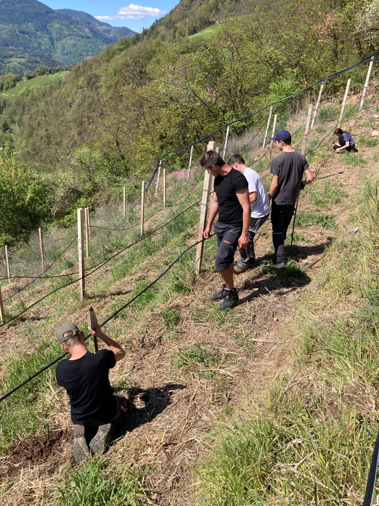 Wir sind stolz auf unsere Schülerinnen und Schüler der 2. Klassen Obst- und Weinbau, welche mit ihren Praxislehrern Stefan Vaja, Pfraumer Johannes, Nicola Carmignola und Johannes Unterhauser heute einen Weinberg, einer in Not geratenen bäuerlichen Familie, neu bepflanzt haben.
