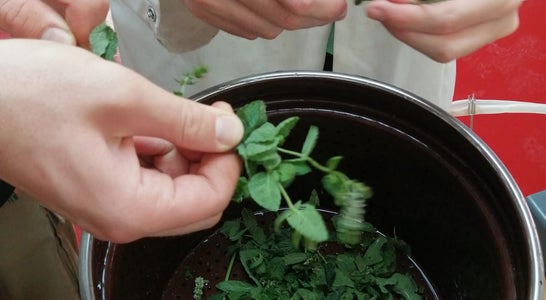 Unsere Lebensmitteltechniker*innen bei der Produktion von Kräuterextrakten aus Hopfen, Minze, Salbei, Melisse und Rosmarin.