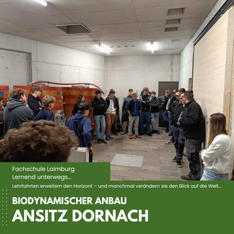 Während der Bio- und Nachhaltigkeits- und Innovationstage erhalten die Schülerinnen und Schüler tiefgehende Einblicke in ökologische Produktionsformen. Ein vielseitiges Programm mit Lehrfahrten, Fachvorträgen, Betriebsbesichtigungen und praxisnahen Workshops vermittelt anschaulich, wie nachhaltige Landwirtschaft, innovative Lebensmittelverarbeitung und bewusster Ressourceneinsatz zusammenwirken.