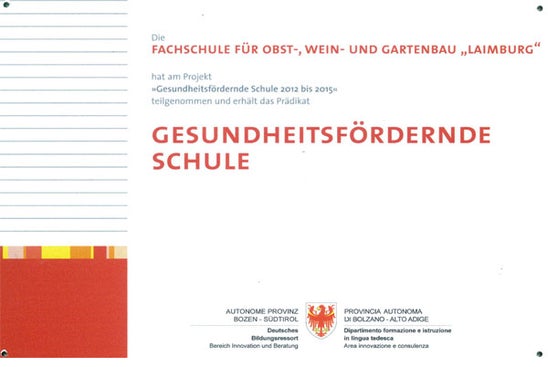 Auf dem Weg zur Gesundheitsfördernde Schule sein, heißt für die Fachschule Laimburg: die Schulgemeinschaft in Bewegung zu bringen, Schule zu verändern durch eine jugend-, lehrer- und lerngerechte Rhythmisierung des Unterrichts, durch bewegtes und selbstständiges Lernen, durch bewegte Pausen, bewegte und beteiligende Organisationsstrukturen, durch Öffnung der Schule nach Außen, durch vernetztes Denken.
